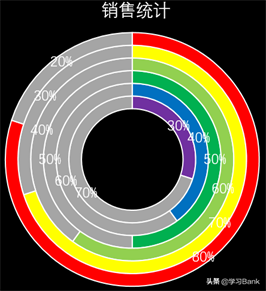 最佳答案1、原始表格如下:原始数据为销售完成情况,其中第1行数据为完成率,第2行数据为未完成率/辅助行数据,即第1行数据+第2行数据=100%。2、设置背景色:为了得到更好的展示效果,打开PowerPoint软件,新建幻灯片,右键“设置背景格式”,选择“纯色填充”之黑色。3、插入圆环图:打开PowerPoi......