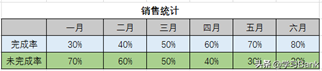 原始数据为销售完成情况,其中第1行数据为完成率,第2行数据为未完成率/辅助行数据,即第1行数据+第2行数据=100%。