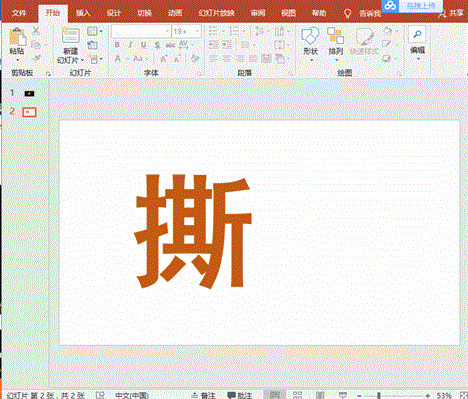 3、按住Ctrl键依次选择左侧的文字和形状,点击【格式】-【合并形状】-【相交】命令得到撕裂文字的左片;同样,点击【格式】-【合并形状】-【剪除】命令得到撕裂文字的右片;