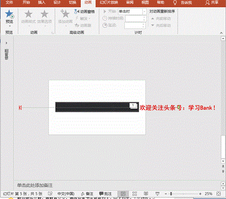 5、设置动画:按住Ctrl键滚动鼠标中键缩小幻灯片,将文本框置于显示屏外框右侧;执行“动画”菜单-“添加动画”-“动作路径”-“直线”命令,将动画终点拖拽至显示屏外框右侧边沿,设置持续时间为30秒,并点击“动画窗格”按钮,点击右侧箭头,“计时”标签中重复设为100;执行“动画”菜单-“添加动画”-“更多强调效果”-“闪烁”,设置开始为“与上一动画同时”,持续时间0.01秒,并点击“动画窗格”按钮,点击右侧箭头,“计时”标签中重复设置为“直到幻灯片末尾”。