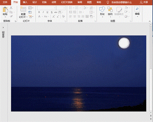 2、设置背景。打开PowerPoint软件,新建幻灯片,设置背景为准备好的夜空图片。