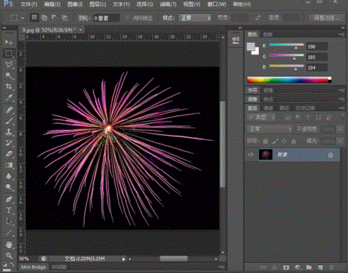 1、准备烟花素材。网上下载烟花图片,保存后,用Photoshop打开,双击背景图层右边的锁,在跳出的“新图层”对话框中点击确定,将背景图层解锁。点击菜单“选择”——“色彩范围”,在“色彩范围”的对话框中选择“取样颜色”中的黑色阴影,点击确定。再按键盘上的“Delete”删除键,去除黑色背景,再点击菜单“文件”——“保存为”png格式,选择“png选项”、交错“无”点击确定。同理处理多个图片,我们的烟花素材就制作完成了。