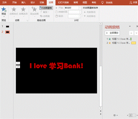 最佳答案1、新建PPT文件,将幻灯片页面背景颜色填充为黑色,也可以找一幅美丽的夜景图片做背景。2、插入文本框,输入文字,“I Love 学习Bank!”,设置文字颜色为“红色”,并按自己的喜好调整字体、字号和文本的位置。3、选择文字,点击【动画】-【添加动画】按钮,在弹出的菜单中选择【进入】-【飞入】动画效......