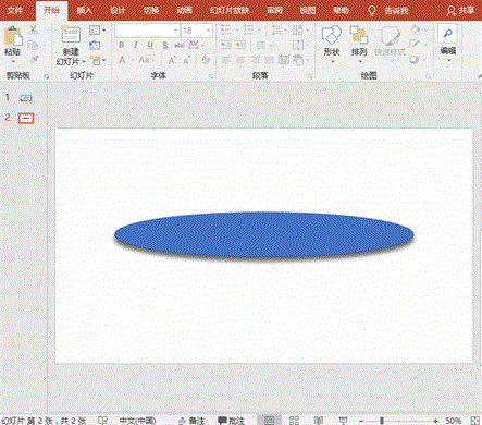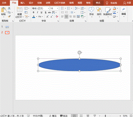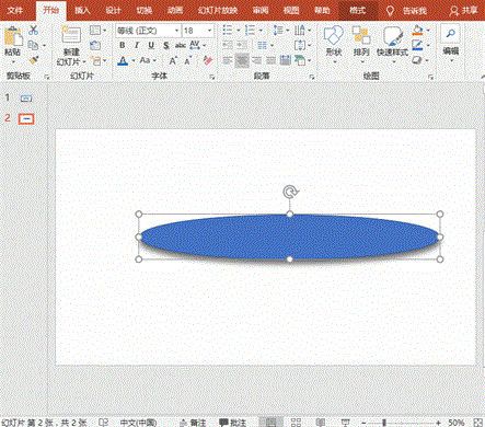 1、打开PowerPoint软件,新建幻灯片,点击【插入】-【插图】-【形状】按钮,选择“椭圆”工具在画布中绘制一个细长的椭圆形。