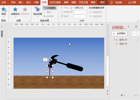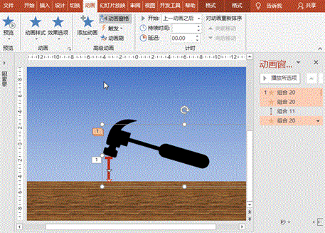 最佳答案实现思路:锤子上扬准备——锤子向下锤击钉帽,伴随着敲击声,锤子和钉子一起向钻向木板——再次上扬锤子——同上,钉子完全进入木板。制作步骤:1、渐变背景:打开PowerPoint软件,新建幻灯片,右键“设置背景格式”-“渐变填充”-设为蓝白色渐变填充。2、场景布置:(1)基本元素绘制:使用“插入”菜单-......