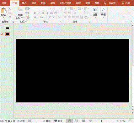 1、打开PowerPoint软件,新建幻灯片,右键“设置背景格式”菜单,选择“填充”之“纯色填充”,选择填充的颜色为黑色。