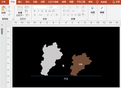 1、各省的地图颜色可以在PS中调整后再插入PPT中。