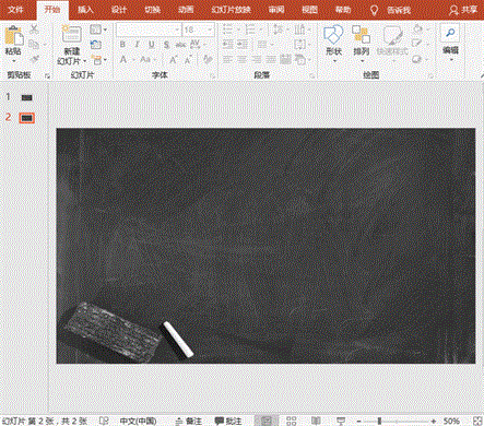 1、打开PowerPoint软件,新建幻灯片,插入黑板背景图片。
