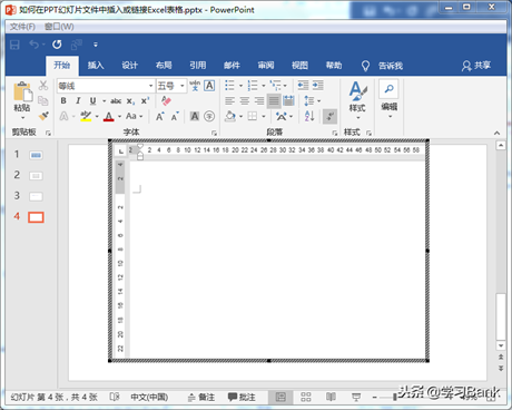 3、PowerPoint中弹出Word界面,根据需要在Word文档中进行编辑设置。利用Word界面中的“页面布局”“引用”等各选项卡对该文档进行各种设置。