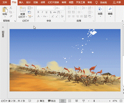 (2)插入底图:执行“插入”菜单-“图像”-“图片”命令,插入准备好背景图片,放缩后充满整个幻灯片。