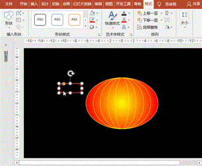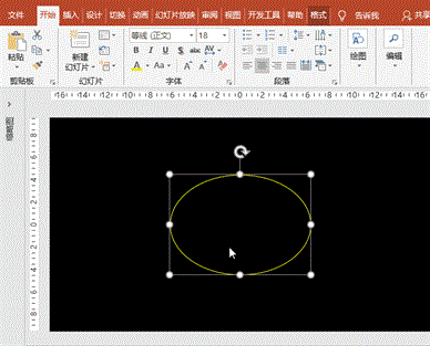 执行“插入”菜单-“形状”-“基本形状”-“椭圆”命令,幻灯片的中央绘制一个适当大小的椭圆形;设置其填充为无、轮廓为黄色、宽度为1磅;