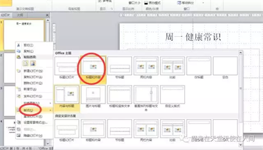第二步 设置导航内容;右击幻灯片,选择Office主题里的版式里的标题和内容。