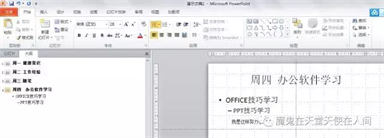 1)PPT有导航;2)其中第四张PPT有一级大纲OFFICE技巧学习和二级大纲PPT技巧学习。