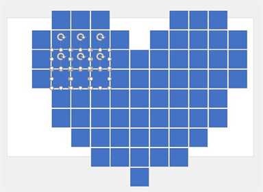 选中心形,使用 Lvyhtools 的「括域保留」功能,可以保留被心形遮盖的正方形,除去遮盖面积不到 50% 的正方形: