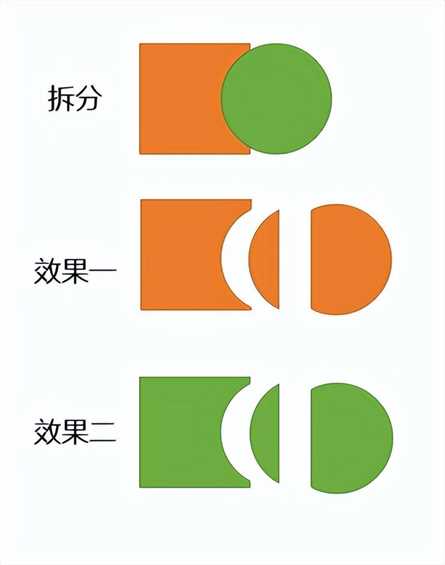 点开合并形状后我们会看到五个功能:结合、组合、拆分、相交、剪除