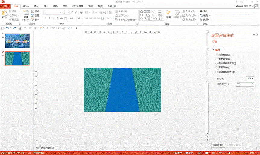 将刚才复制出来的三个梯形放回页面中,提高透明度,后面就显现出来了。为了更美观,再绘制一条直线,重叠在梯形交界处,填充为白色,将线条加粗,另外一个同样操作。最后将页面上的文字复制过来就搞定了。