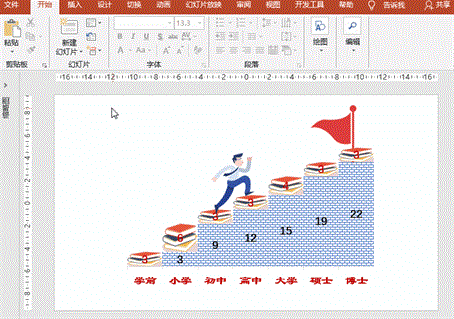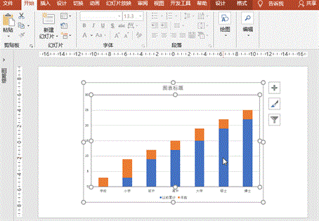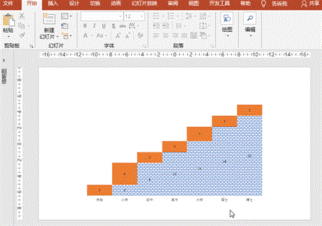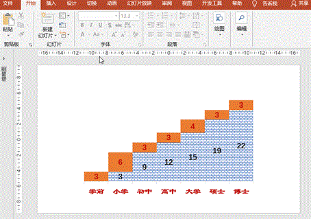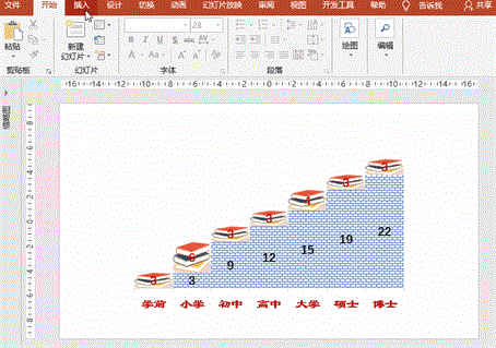 1、台阶的制作可以插入基本形状图形来设置,本文仅是图表的应用。