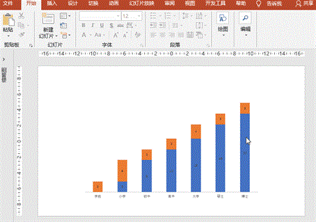 打开PowerPoint2016软件,新建幻灯片;执行“插入”菜单-“图表”,打开“插入图表”对话框,选择“柱形图”之“堆积柱形图”;切换到Excel表中复制数据源后,切换到PPT的图表框中,删除“系列3”,鼠标置于A1单元格中,粘贴源数据,关闭图表框。
