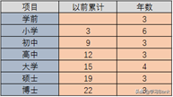 在Excel中设置数据源如图所示。其中“年数”为每个项目的学习年份数量,“以前累计”为本项目以前的项目的累加年份数量。