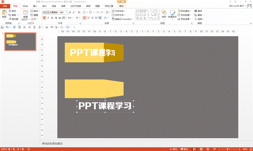 最佳答案首先插入一个矩形形状,去掉轮廓,填充为黄色,然后再插入一个梯形,也是去掉轮廓,填充黄色,并通过控制点调整一下上底的宽度,然后向右旋转90度,下底的宽度与矩形的宽度设置成一样,将两者合并在一起。插入一个文本框,输入相应的文字。由于文本框也是文字,需要将其转化为图片,只需要复制然后粘贴成图片就可以了,要......