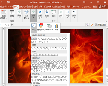 首先我们找一张比较燃的图片填充一下背景,然后点击【插入】——【形状】——【圆角矩形】,在PPT中插入若干个矩形,具体数量大家可以根据自己的情况而定,小编在这里插入5个~