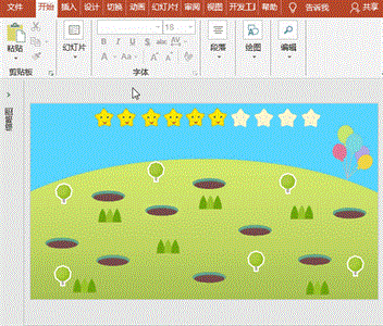 最佳答案实现思路:欢乐田园中,安静而温馨——突然,一个洞中,地鼠悄悄的探出了身体——快,锤击之——地鼠闻风遁入地中——一只只地鼠探出,一只只锤击。操作步骤:1、安静而温馨的田园背景:打开PowerPoint2016版软件,执行“插入”菜单-“图像”-“图片”命令,插入准备好的背景图片,调整大小,使其充满整个......