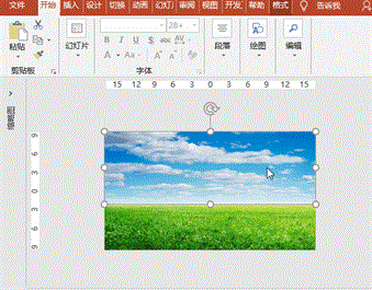 最佳答案操作步骤:1、图片插入:打开PowerPoint2016软件,新建幻灯片,执行“插入”菜单-“图像”-“图片”命令,插入准备好的素材图片,调整大小使其充满屏幕;按Ctrl键拖动复制一张备用。2、图片裁剪:双击其中的一张图片,执行“格式”菜单-“大小”-“裁剪”工具,将图片下方绿草部分裁剪去除,只保留......