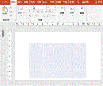 打开PowerPoint2016软件,新建幻灯片,执行“插入”-“表格”按钮,拖动鼠标插入一个4行4列的空表格,调整其大小和位置;“设计”菜单-“表格样式选项”中取消勾选“标题行”和“镶边行”;“绘制边框”中选择线条为3磅、笔颜色为白色;“绘制边框”中点击“所有框线”按钮。