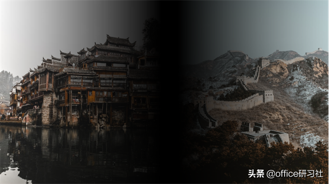 要使突出文字内容的同时让图片某个部分增加页面的表现力,此时使用渐变蒙版就可以弱化图片无关内容的影响,又不影响图片对整个PPT页面的作用。