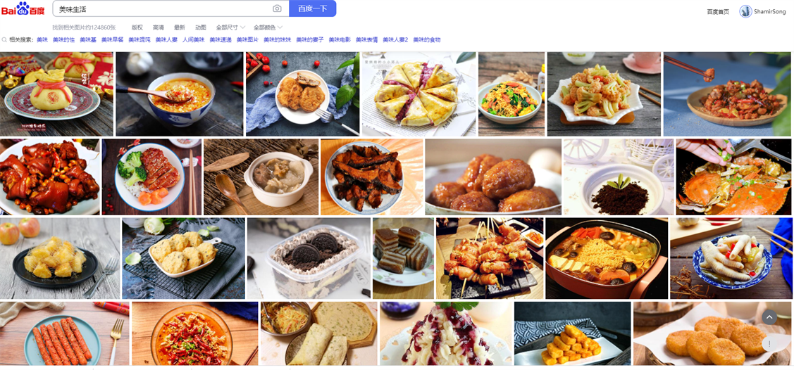 按照这个愿景中的内容,我们在网络上按照关键词进行搜索,比如“美味”
