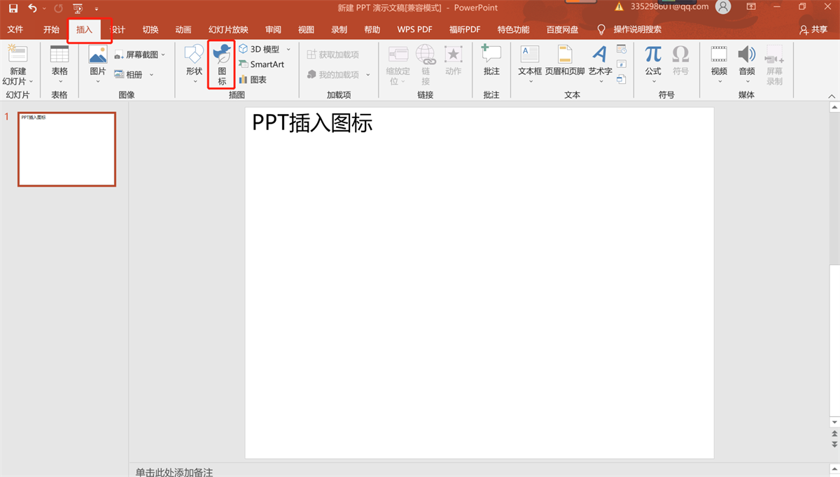 2、插入工具栏中选择图标。下图中用红框做了标识。我以前插入形状也经常使用,今天主要讲图标,那就给图标表格红框吧~