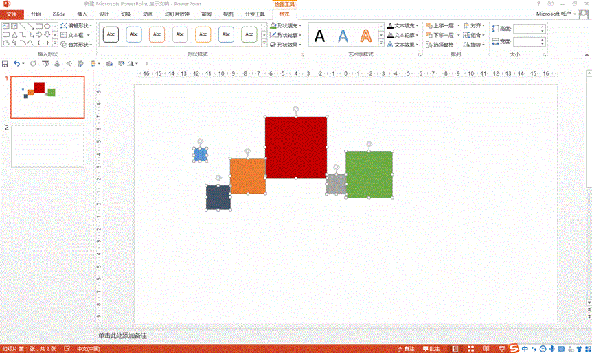 首先来看一下对齐。这里提供了四种对齐方式,分别是左对齐、右对齐、顶端对齐和底端对齐。如果图形时横向排布的,那就使用顶端对齐和底端对齐,另外两种是对应纵向排布的图形。这里的对齐是以图形的相对位置为基准点的,顶端对齐就是最上面的图形的最顶端的边缘为基点,可以看一下操作效果,这里就不赘述了。