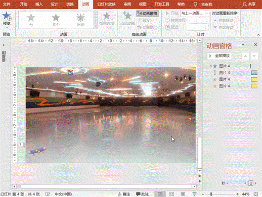 (2)与滑板一样设置一系列动画,并使进入动画置于滑板进入动画之后。设置动画路径时,尽量和滑板路径保持贴合。