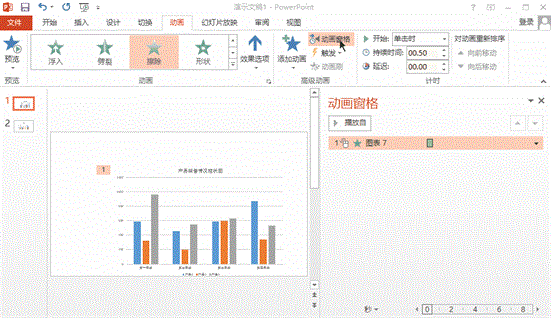 那么如何让图表各自动起来呢?我们就可以通过“动画窗格”来实现。下面通过动图来演示一遍:
