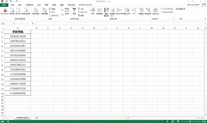 还是点击任意一个数据区域的单元格,点击数据选项卡下面的“删除重复项”,确定即可完成。但是,如果不想删除,只是想将重复的数据标记出来呢?请看下面的操作。