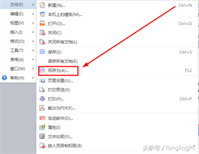 打开文件菜单,找到另存为,如下图: