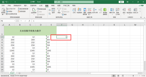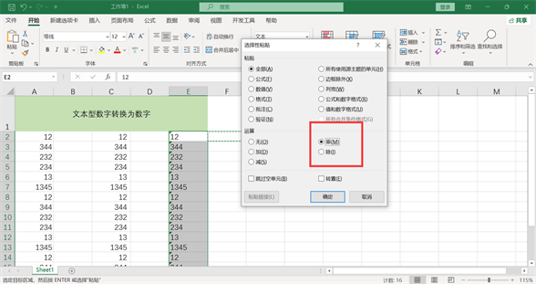 选中单元格批量转换成数字格式,清除前面输入的数字1即可。