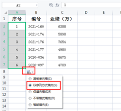 ①一般咱们填写序号,那么只要在第一个单元格内输入数字1,然后按住单元格右下角的填充柄向下拖动,然后在【自动填充选项】选择【序列填充】就可以了;