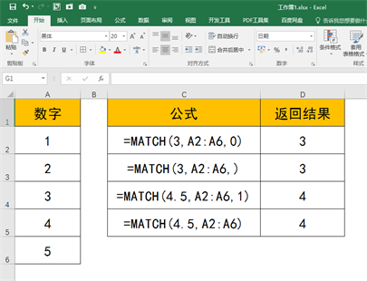 但是有时候我们也会遇到MATCH函数中第三参数匹配类型缺省的情况,比如=MATCH(3,A2:A6,)或者=MATCH(4.5,A2:A6),这又该如何确定匹配类型呢?