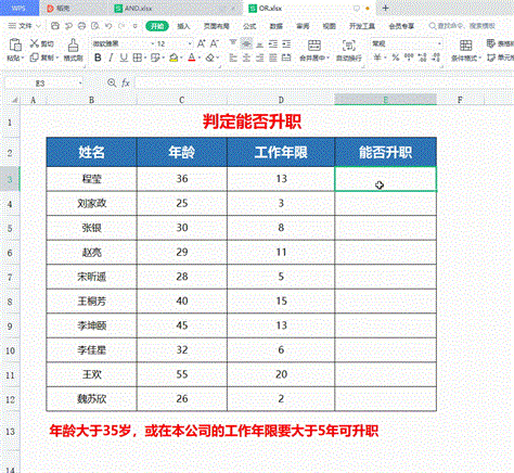 OR(logical1,logical2,…)Logical1,logical2,… 需要进行检验的 1 到 30 个条件表达式。