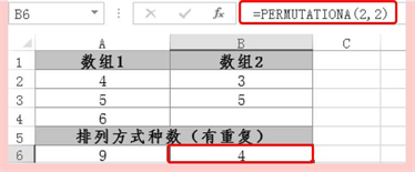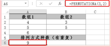 PERMUTATIONA函数用于返回可从对象总数中选择的给定数目对象(含重复)的排列数。