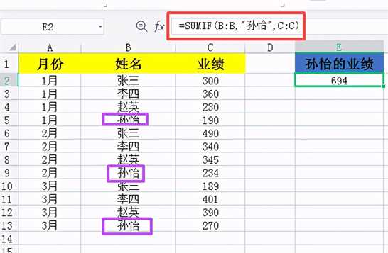 最佳答案SUMIF函数经典用法:一、求和个人业绩总额=SUMIF(B:B,”孙怡”,C:C)二、求和除了某个人以外的业绩总额=SUMIF(B:B,”<>孙怡”,C:C)三、求和大于某个数值的业绩总额=SUMIF(C:C,”>300......