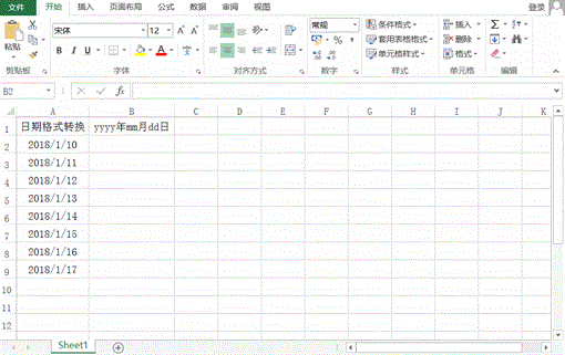 1.在单元格中输入公式=TEXT(A2,”yyyy年mm月dd日”)即可。
