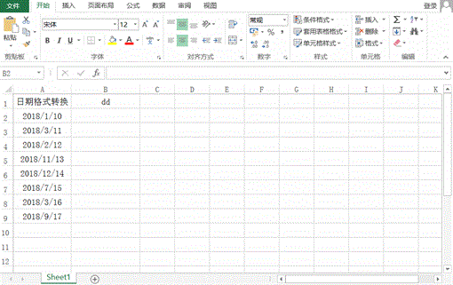 2.在单元格中输入公式=TEXT(A2,”dd”)即可。