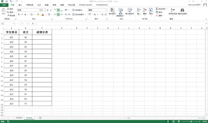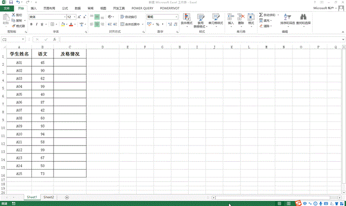 首先,我们需要根据语文成绩判断是否及格,也就是两个条件,这个比较简单,一个IF函数就可以,用TEXT函数表示就是=TEXT(B2,”[>=60]及格;[<60]不及格”),这样也挺直观的。