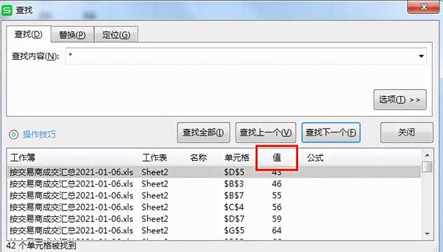 1、查找框输入“*”,点“查找全部”;