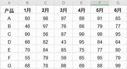 比如下图表中,要求选取1-6月产品销量数量>90的单元格,并填充为绿色。那么怎么操作呢?
