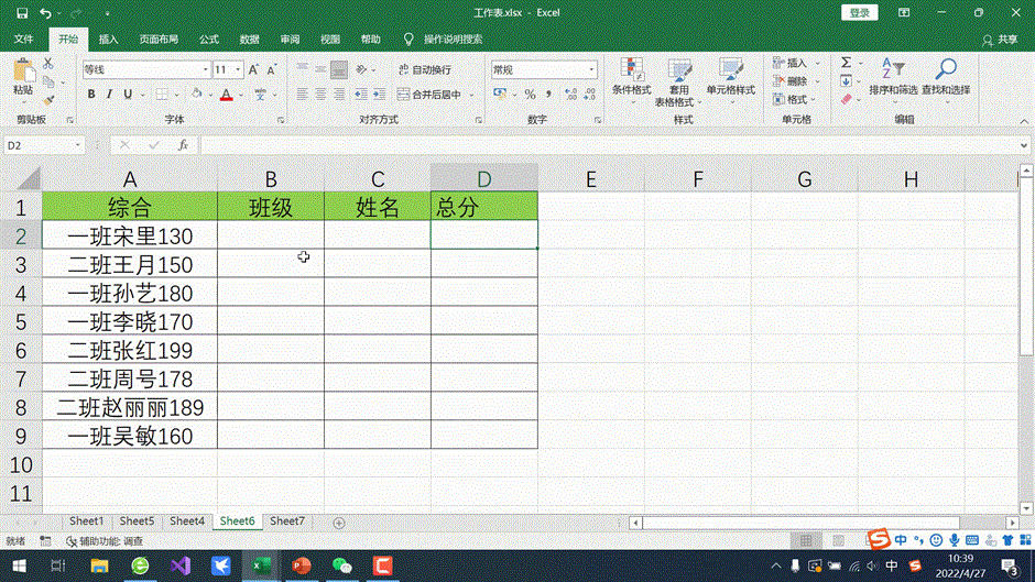 C D列重复2、3、4步操作即可。