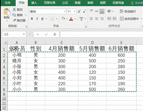 有没有发现动态图表很高大上?如下图,我们怎么样快速直观地找到每一个业务员每个月的业绩呢?