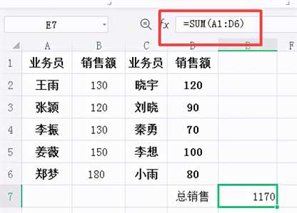 直接选择一个区域求和。【SUM函数在求和时候可直接忽略文本。】